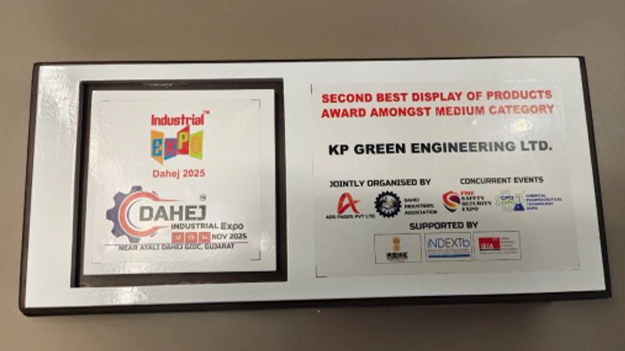 KP Group Highlights Its Engineering Excellence at Dahej Industrial Expo 2025 as KP Green Engineering Ltd. Secures the Second Best Product Display Award in the Medium Category.